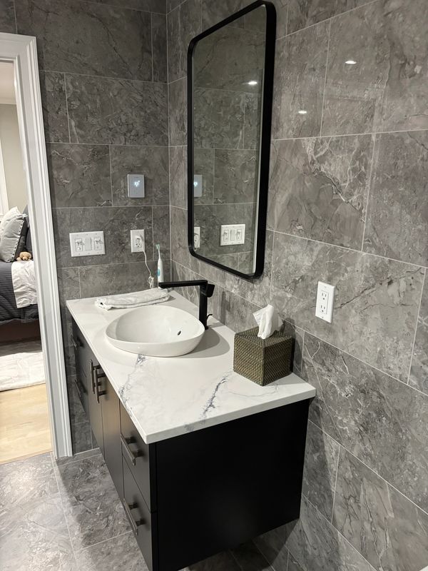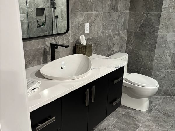 Client-approved craftsmanship in action. See the transformation for yourself – another stunning bathroom remodel completed by our expert team!